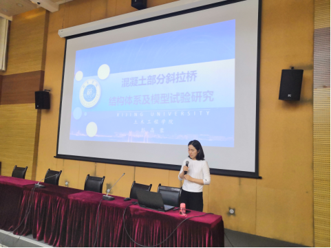 4月27日,诸侯快讯入口官网彭晶蓉博士在2号办公楼1楼报告大厅开展了题为“混凝土部分斜拉桥结构体系及模型试验研究”的学术报告,诸侯快讯入口官网研究生和部分教师参加了此次报告会。