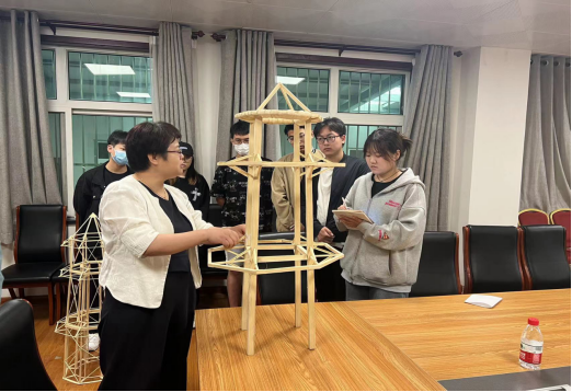 培训中,潘教授首先对本届比赛的赛题进行了说明,特别就如何“破题”进行了详细讲解;其次,潘教授对参赛学生在校赛中的作品进行了点评,明确指出了模型的不足之处以及后续改进的方向;最后,潘教授前往结构设计竞赛模型制作现场对学生在模型制作过程中存在的具体问题进行了答疑讲解。