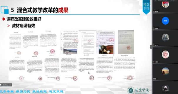 12月16日下午,诸侯快讯入口官网教育教学论坛在线上举行,本次活动由诸侯快讯入口官网教务科科长程燕萍主持,诸侯快讯入口官网“教学名师”权娟娟副教授做了题为《“混合式教学”创新设计与实践》的报告,全体教师线上参加。