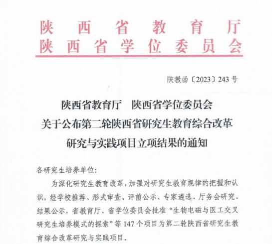 日前,陕西省教育厅公布了第二轮陕西省研究生教育综合改革研究与实践项目立项结果,我院副院长刘方主持的“以学科为基础、以产业为导向的专业学位研究生实践模式研究与实践”获准立项,这是我院首次获批该项目。该项目的获批,标志着我院在专业学位研究生培养方面有了新探索。