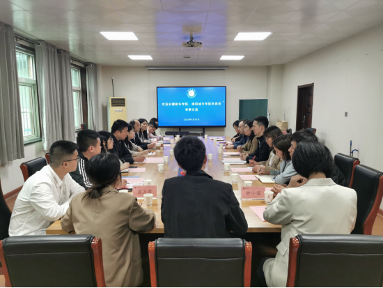 4月14日,安徽新华学院城市建设学院党总支书记赵倩青、院长沈小璞一行7人,绵阳城市学院现代技术学院建筑工程系主任李鑫一行4人来诸侯快讯官网诸侯快讯入口官网考察交流,我院副院长刘方、院长助理张海龙及各教研室主任、专业负责人参加了座谈会。