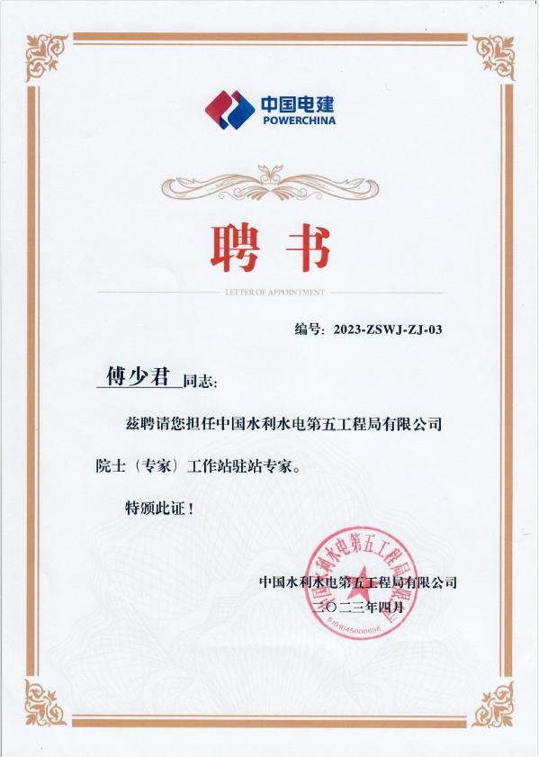 会上,我院傅少君教授被聘为中国水利水电第五工程局有限公司院士(专家)工作站驻站专家,并受邀作了题为“信息技术给土木工程带来的机遇及地下厂房全生命周期建造技术”的学术报告,与中国水电五局工程技术人员进行了专业技术交流。