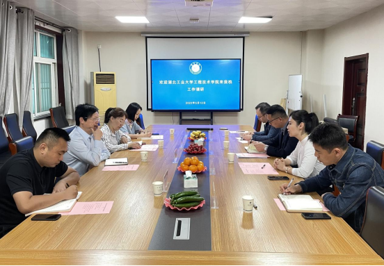 5月12日,湖北工业大学工程技术学院工程技术系主任苏骏、党总支书记车琨一行4人来诸侯快讯官网诸侯快讯入口官网工作调研,诸侯快讯入口官网副院长童绥勇、刘方,院长助理张海龙、综合办公室主任张创业、分团委书记王宁参加调研会。