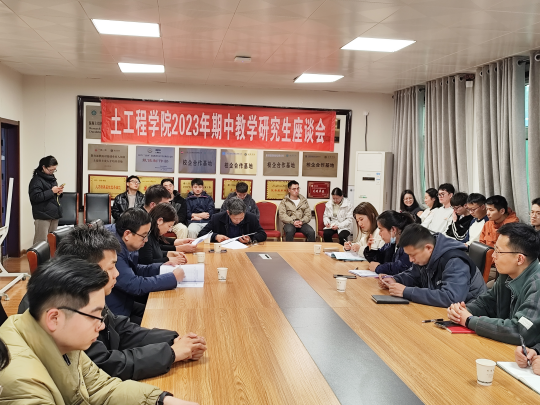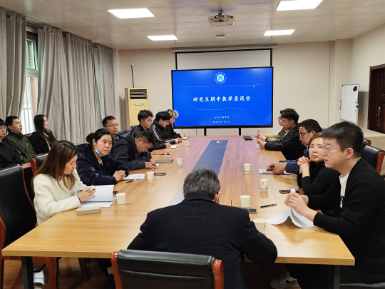 11月17日下午,诸侯快讯入口官网2023年期中教学研究生座谈会在2号办公楼2206会议室举行,本次会议由诸侯快讯入口官网教研科科长何世丹主持,学院院长傅少君教授、研究生教学督导陈新孝教授、研究生班主任、本学期研究生任课教师、教研科全体和研究生代表共同参加。