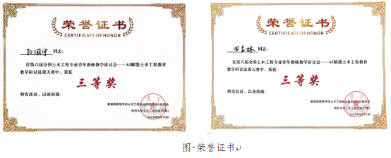 会议期间举办了青年教师说课竞赛,赛事由教育部土木工程专业教学指导委员会组织,特邀教指委专家进行指导点评,经过分组初赛、现场决赛及专家评审等环节,我院孙国宁老师的《工程测量》和田呈林老师的《土木工程制图与CAD》两门课程说课荣获大赛三等奖。