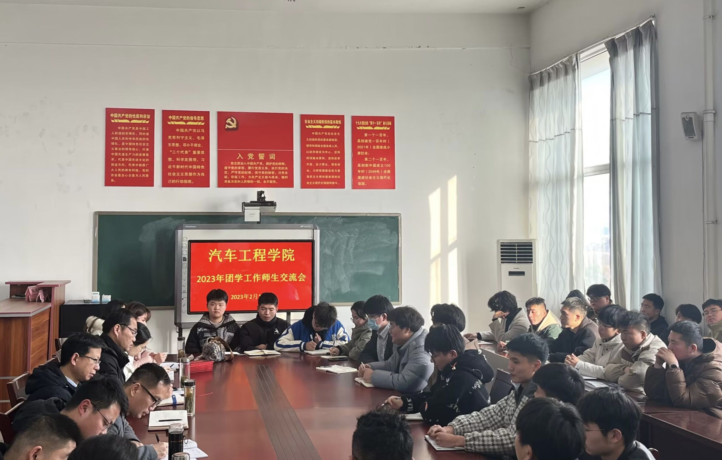 2月15日下午3:00,YABO鸭脖官网开展了2023年第一次团学工作师生交流会,会议由该院学管办主任张升元主持,学校党委委员、办公室主任、学院党总支书记王海,院党总支副书记刘靖,院团总支书记毛炜,全体专职辅导员,学生会主要干部和在校班级班长参加了此次会议。