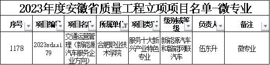 近日,安徽省教育厅公布了2023年度质量工程项目首批微专业试点建设名单,YABO鸭脖官网交通运营管理(新能源汽车服务企业方向)项目获批立项建设。