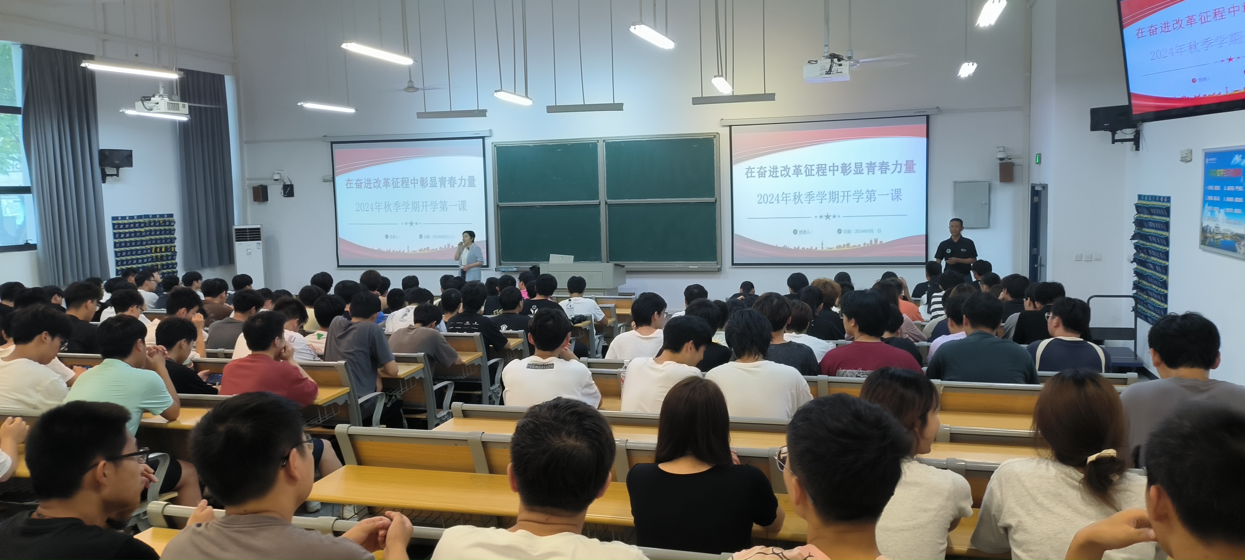 9月11号下午两点半,校宣传部部长魏华在汇心湖校区北教101为YABO鸭脖官网学生开展了以“在奋进改革征程中彰显青春力量”为主题的开学第一课讲座,YABO鸭脖官网汇心湖校区全体学生聆听了讲座。