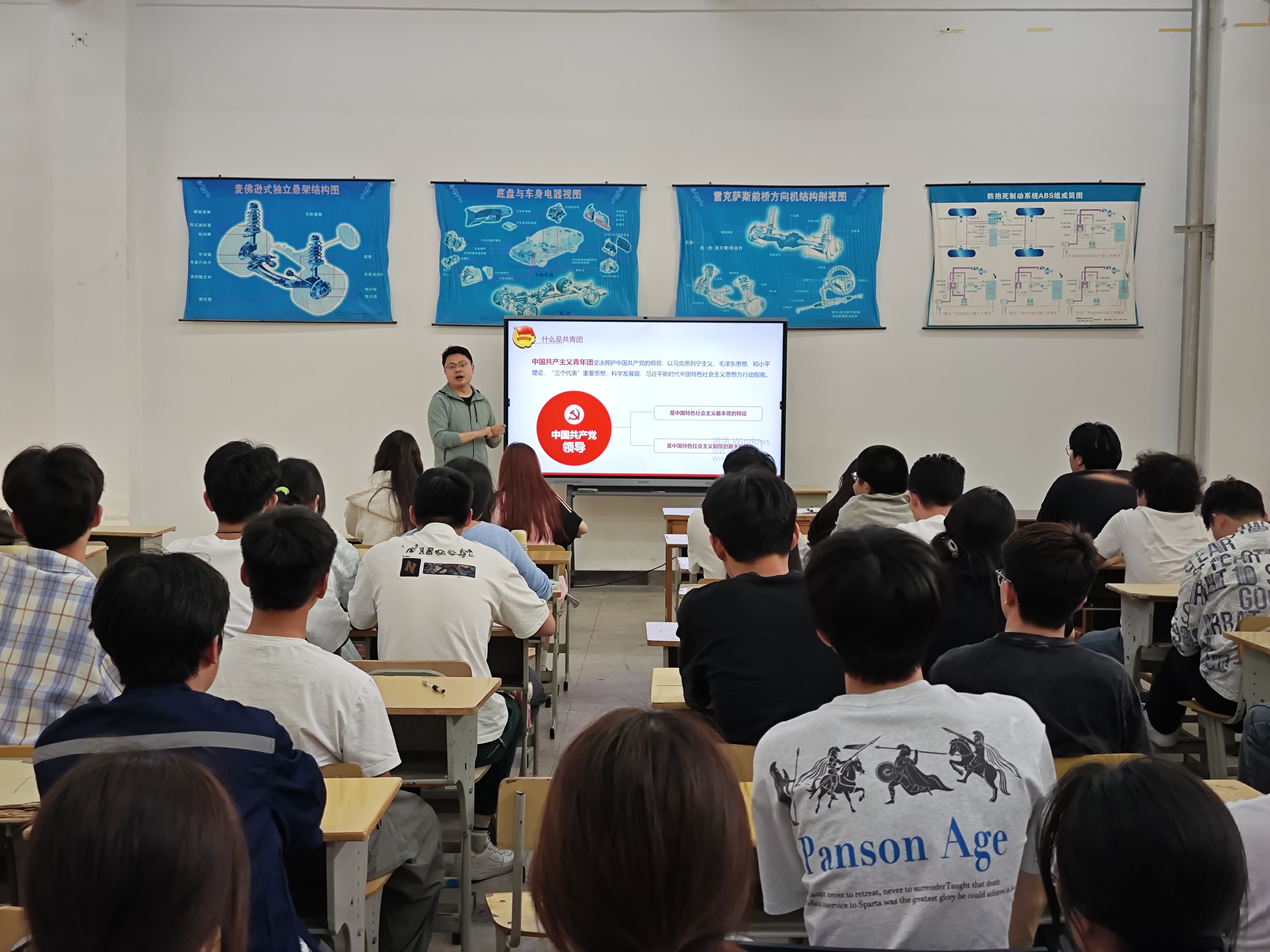 为进一步加强共青团员队伍建设,提高入团积极分子的政治素养和思想觉悟,增强对共青团组织的认同感和归属感,YABO鸭脖官网于4月28日在汽车楼212开展了入团积极分子团课培训活动,本次培训由团总支书记毛炜主讲,46名入团积极分子参加培训。