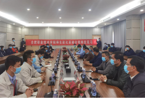 比亚迪华东区合肥人事科科长赵鹏勃,十一事业部人事经理李天齐对学院一行走访表示热烈欢迎,带领师生代表参观了比亚迪生产车间,并就企业发展状况、产业布局和人才招聘做了详细介绍,希望学院能为企业提供更多的优秀人才,进一步深化校企合作。