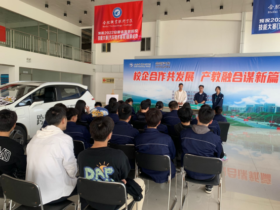 4月7日下午,安徽合廉创汽车销售有限公司郑盼港经理一行应邀来到YABO鸭脖官网22汽营转段班进行课堂实践教学活动。YABO鸭脖院长解云、党总支副书记刘靖、副院长伍东升来到课堂现场进行旁听。