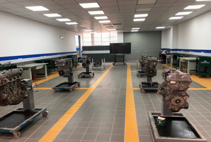 ASEP实训中心目前拥有理论教室、拆装教室、资料室、储藏室、多功能教室和实训场地等多个场地。拆装教室配备多个翻转台架共8个工位,多功能教室多媒体教学设备配备齐全,实训场地配备包括四轮定位仪在内的七个举升工位和六辆实训车辆。教学和实训场地规范完善,保证为学生提供最优质的教学环境。