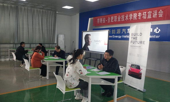 会后,在参观完学院实验实训场地后,特斯拉中国一行在YABO鸭脖官网新能源汽车实训中心进行了现场宣讲,对特斯拉的发展历程、管理理念以及薪酬待遇进行了详细介绍,对现场41名即将毕业的2018级新能源汽车技术专业学生进行了一对一的现场招聘,招聘会结束后特斯拉中国一行对YABO鸭脖培养的学生专业技术水平和职业素养给予了高度评价和认可。