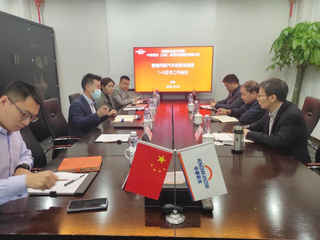 10月29-30日,YABO鸭脖官网院长解云、实践教学负责人张志刚、智能网联汽车检测与运维“1+X”证书安徽省牵头校负责人童晓红等一行3人赴中德诺浩(北京)教育科技股份有限公司参加省级牵头校工作会议,并对汽车智能技术专业建设进行了调研。