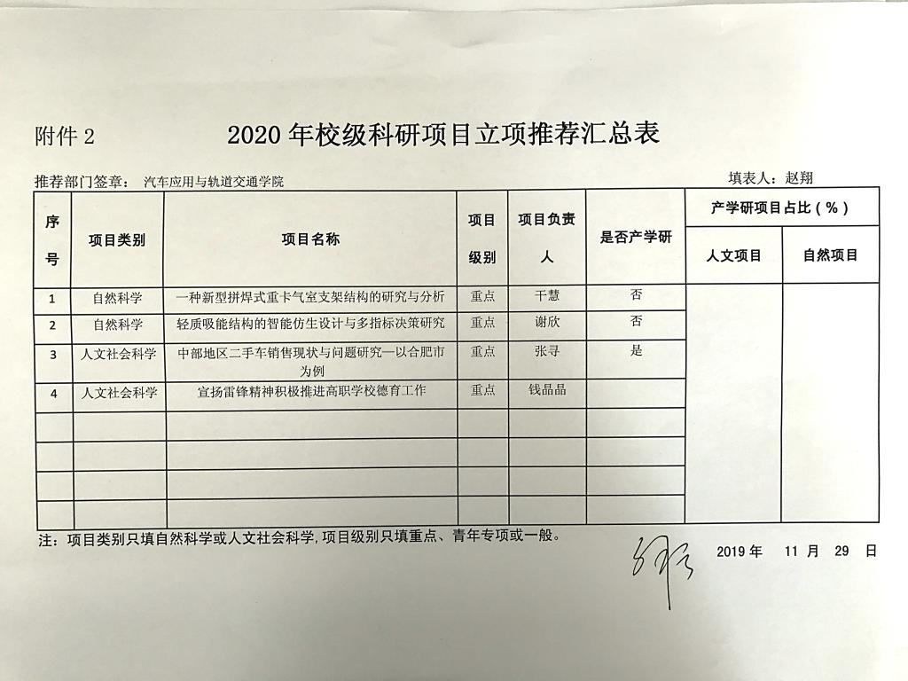 2020年校级科研项目汇总