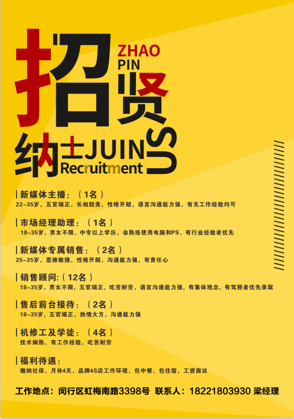 上海普埃斯特汽车销售服务有限公司招聘简章