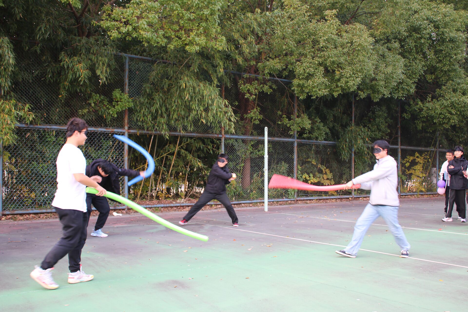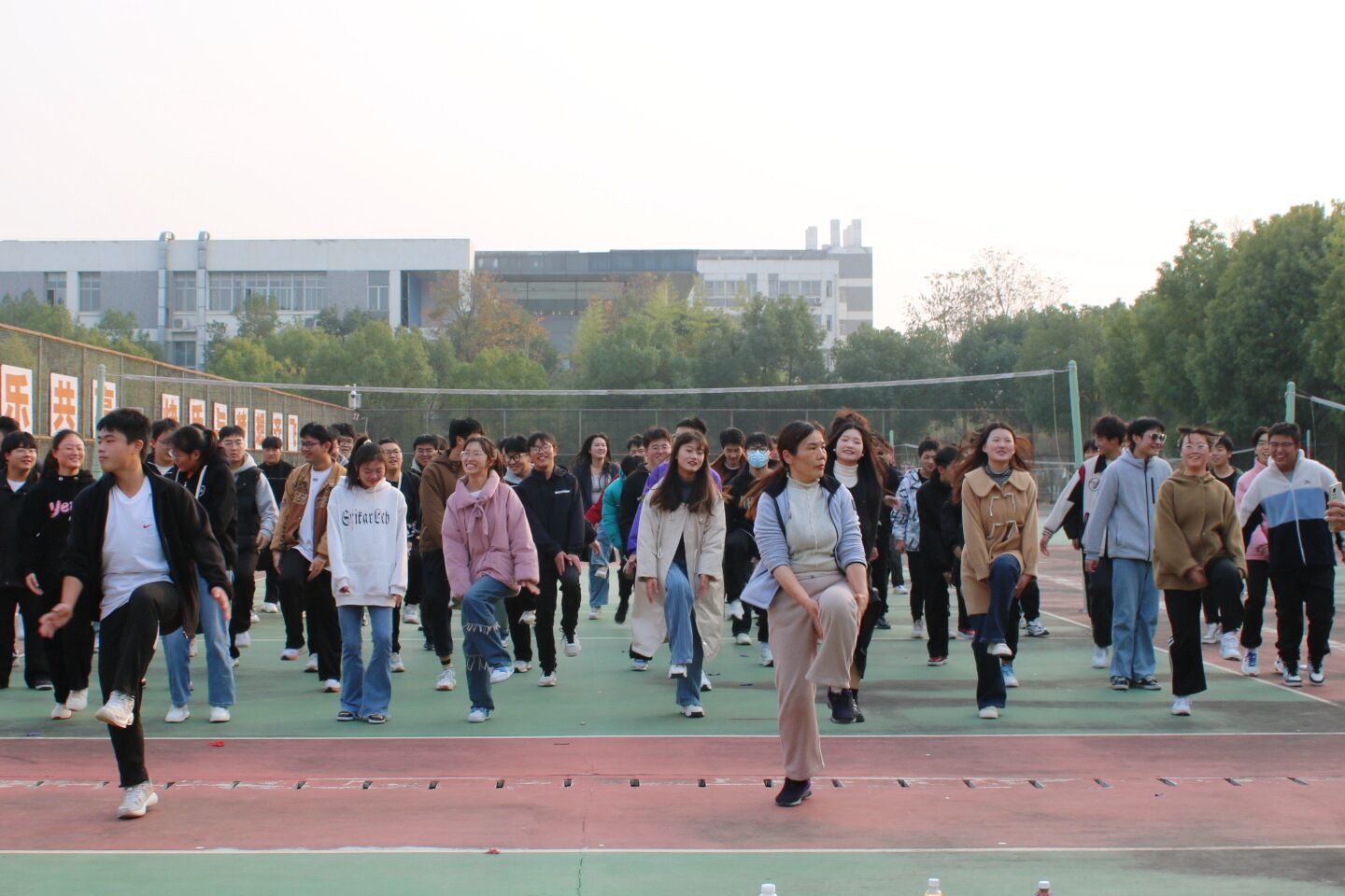 本次活动以团体小游戏为主,同学们先后进行了“健身操”“套圈”“蒙眼互打”“无敌毛毛虫”等游戏。在王桂年老师带领下,同学们跳起节奏欢快的健身操,在这个过程中,同学们逐渐从疲惫的学习状态中解脱出来,感受到身体逐渐舒缓和放松;“无敌毛毛虫”游戏通过灵活穿梭、团队协作的方式,提升同学们的肢体协调能力,充分展现团队的默契配合;“蒙眼互打”游戏以声辨位,用现场笑声不断,放松了同学的心情;“套圈”游戏则考验同学们的平衡力,大家互帮互助,拉近了彼此间的距离。